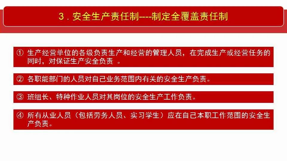 这次修改安全生产法的一大亮点就是进一步压实了生产经营单位的安全生产主体责任。生产经营单位实施全员安全责任制,每一个部门、每一个岗位、每一个员工都不同程度直接或间接影响安全生产。安全生产人人都是主角,没有旁观者。这次修改新增全员安全责任制的规定,就是要把生产经营单位全体员工的积极性和创造性调动起来,形成人人关心安全生产、人人提升安全素质、人人做好安全生产的局面,从而整体提升安全生产水平。