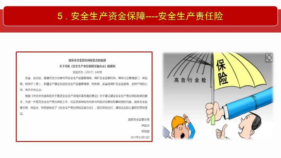 企业应将安全生产投入纳入年度生产经营计划和财务预算,足额提取并按规定使用安全生产费用,保障安全生产设备设施、风险辨识管控、隐患排查整治、设备维修保养、安全教育培训、劳动防护用品配备、保险、应急演练、事故救援等安全生产支出。高危行业企业应按照国家有关规定投保安全生产责任险,其他企业应积极投保。企业应按照法律法规和国家标准、行业标准,健全安全生产标准化工作体系和运行机制,积极开展以岗位达标、专业达标和标准化创建等为内容的安全生产标准化建设,建立完善本单位安全生产例会、例检、隐患排查治理等各项安全生产制度和操作规程,落实强制性安全生产标准规范,确保各生产环节和相关岗位工作符合法律、法规、标准、规程要求,实现安全行为规范化。
