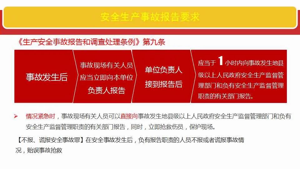 企业应严格遵守事故报告有关规定,按照报告时限、内容、方式、对象等要求,及时、完整、客观地向有关部门报告事故,不得瞒报、漏报、谎报、迟报。企业法定代表人和实际控制人应按规定第一时间到达事故现场,立即启动事故应急救援预案,积极采取有效措施组织抢救,防止事故扩大。
