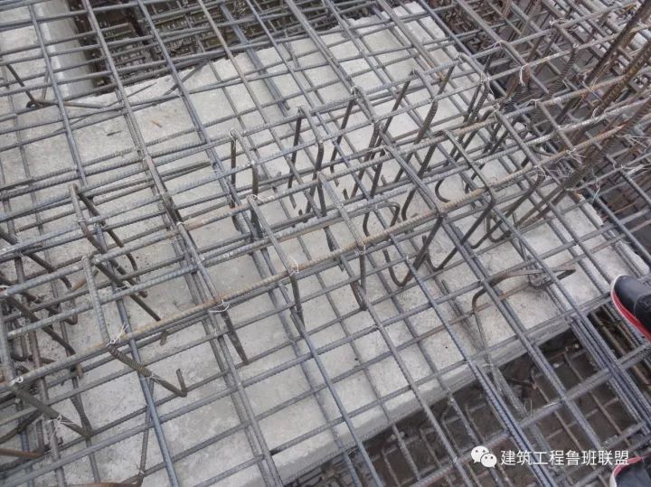 8、顶板吊钩:直径为16mm的钢筋勾到顶板上层钢筋。
