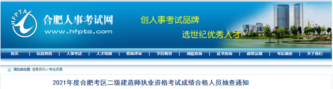 为切实加强事中事后监管,确保告知承诺制试点工作顺利推进,根据省人力资源社会保障厅《关于专业技术人员资格考试告知承诺制试点工作有关事宜的通知》(皖人社秘〔2020〕41号)要求,现就2021年度合肥考区二级建造师执业资格考试成绩合格人员抽查工作通知如下: