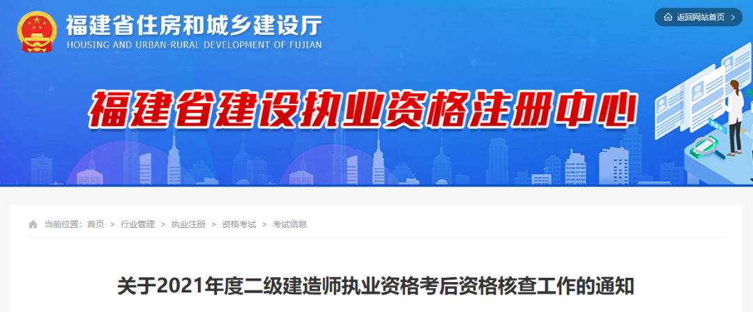 8月20日,福建省住建厅发布《关于2021年度二级建造师执业资格考后资格核查工作的通知》。