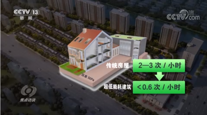 2021年8月24日,CCTV1台《焦点访谈》播出《能耗超低,建筑变绿》专题,本期节目是配合全国节能宣传周和8月25日全国低碳日的主题宣传节目。从试点以来,我国超低能耗建筑已经走过10年时间,响应“3060”双碳目标,我国超低能耗建筑已经站在新的起点,未来将快速推广,让更多的人居住生活在超低能耗建筑中。