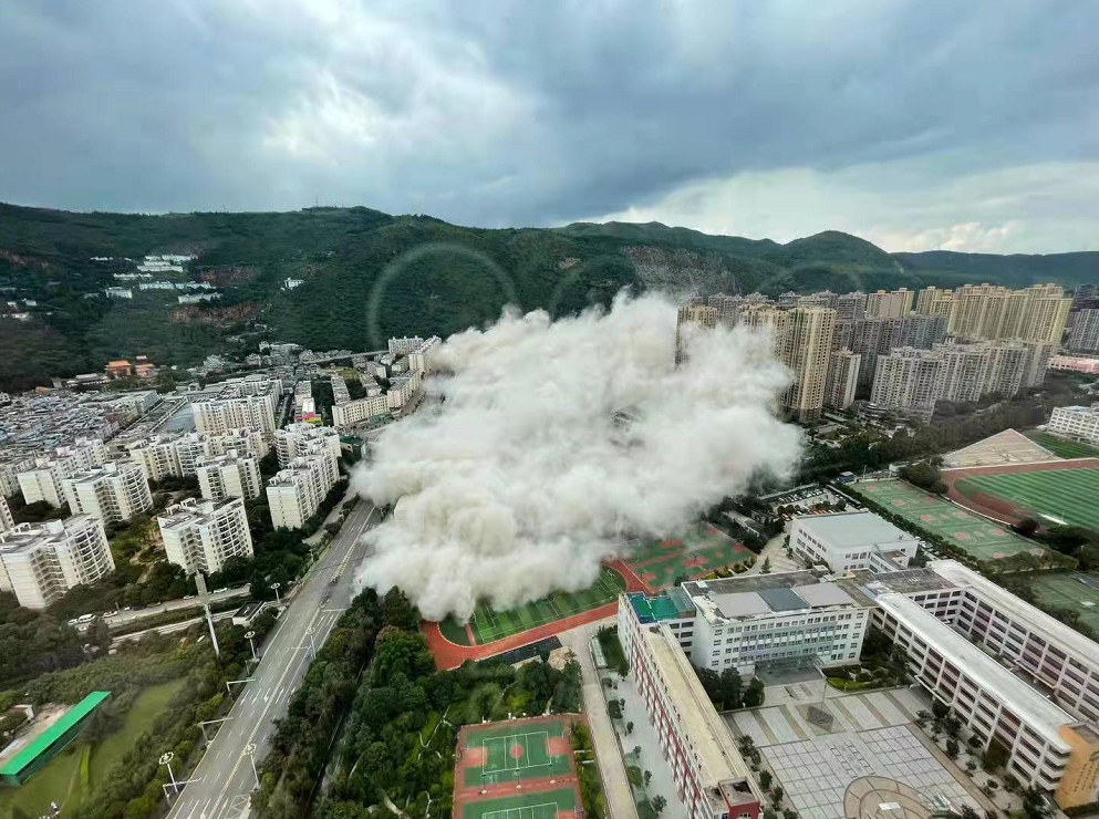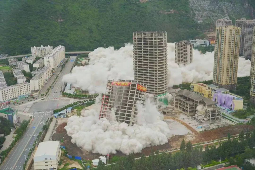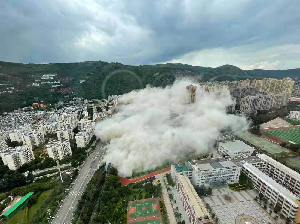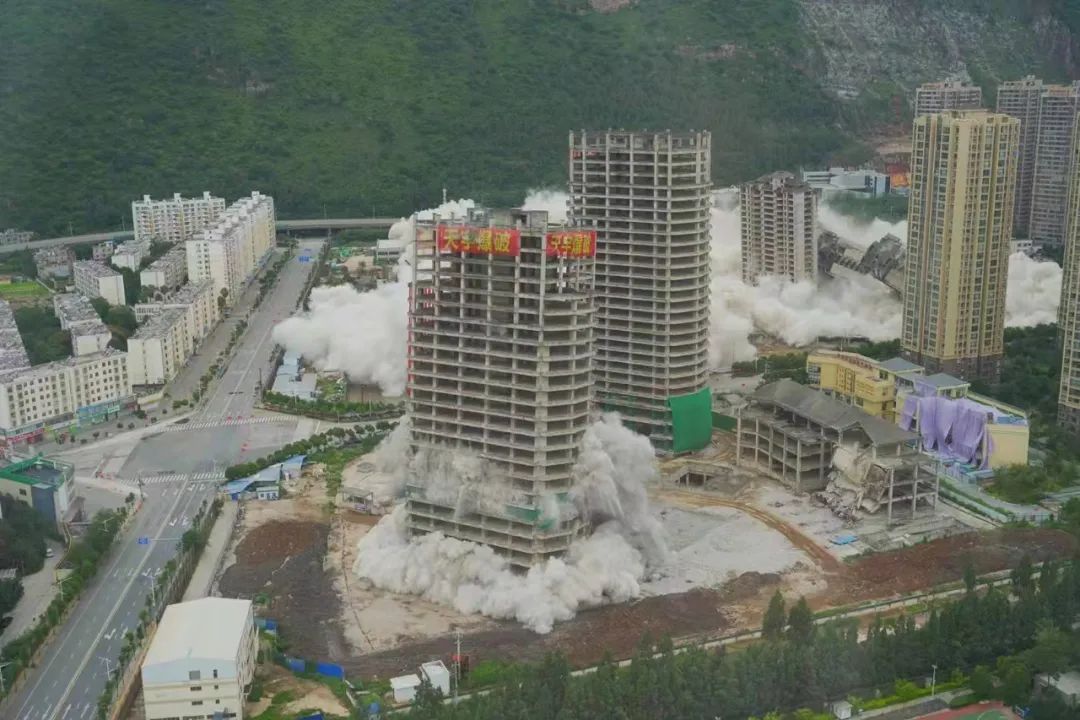 8月27日下午15点30分,昆明著名烂尾楼丽阳星城二期A1\A3\A4 地块成功实施爆破拆除,随着一连串巨大的爆炸声,45秒内,15栋烂尾楼依次倒下。一次性拆除15栋高层建筑,在云南尚属首次,在全国也属罕见。