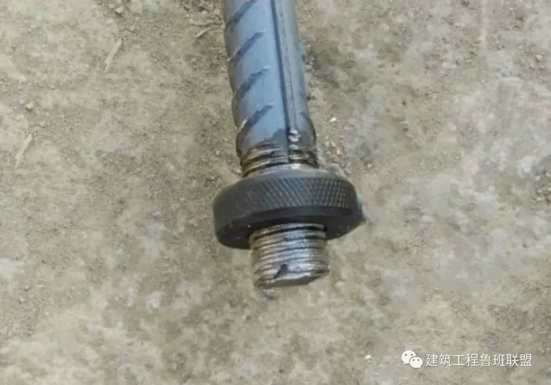 4、在丝头加工好后应当用套筒使拧一下,以保证使用质量,并套好保护帽进行保护(因为钢筋在破开氧化层后容易生锈)。