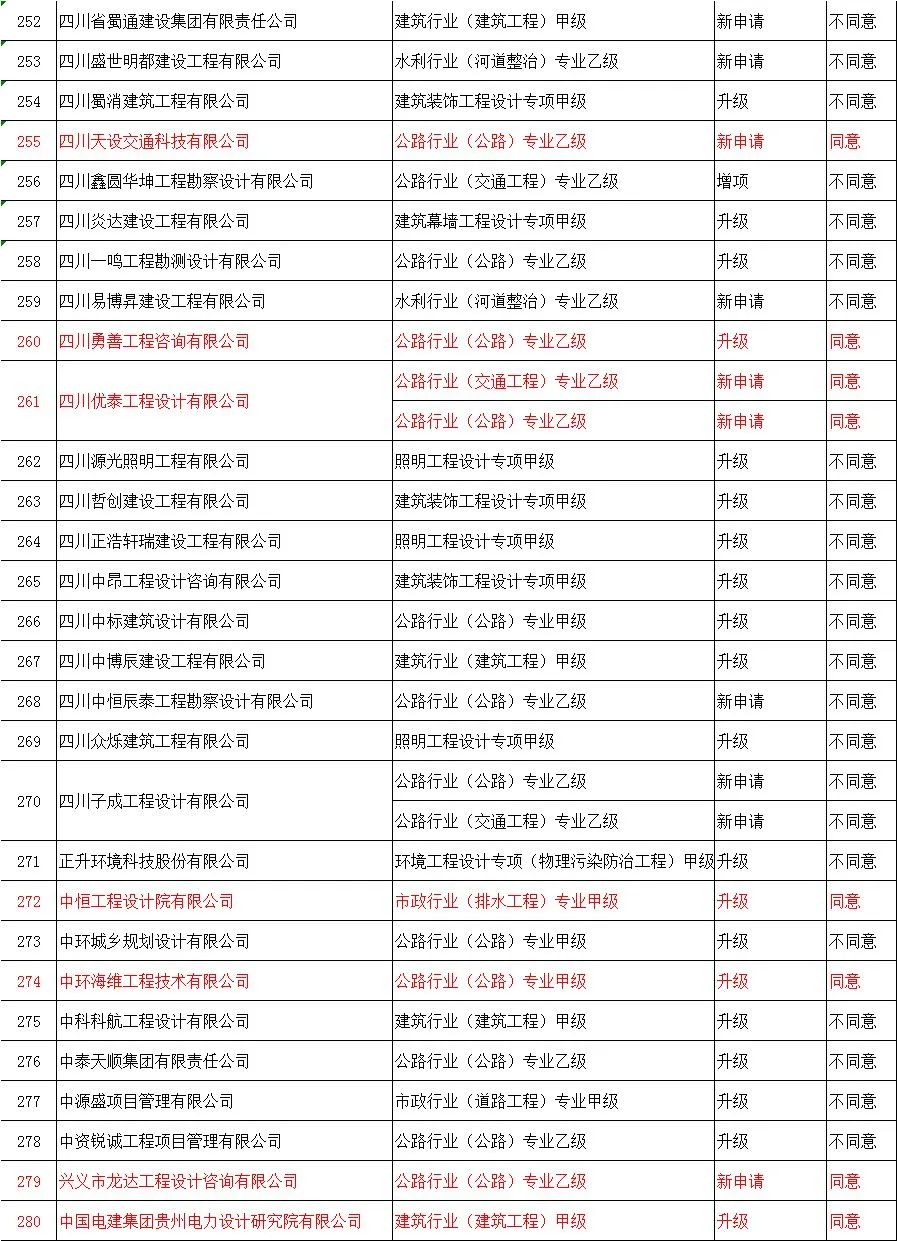 | 278 | 四川同达建设有限公司 | 电力工程施工总承包壹级 | 升级 | 不同意 |