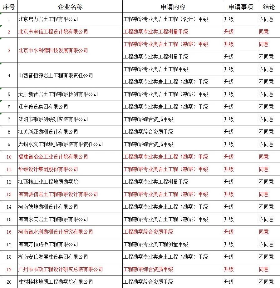 | 15 | 中航建设集团有限公司 | 建筑工程施工总承包特级 | 升级 | 不同意 |