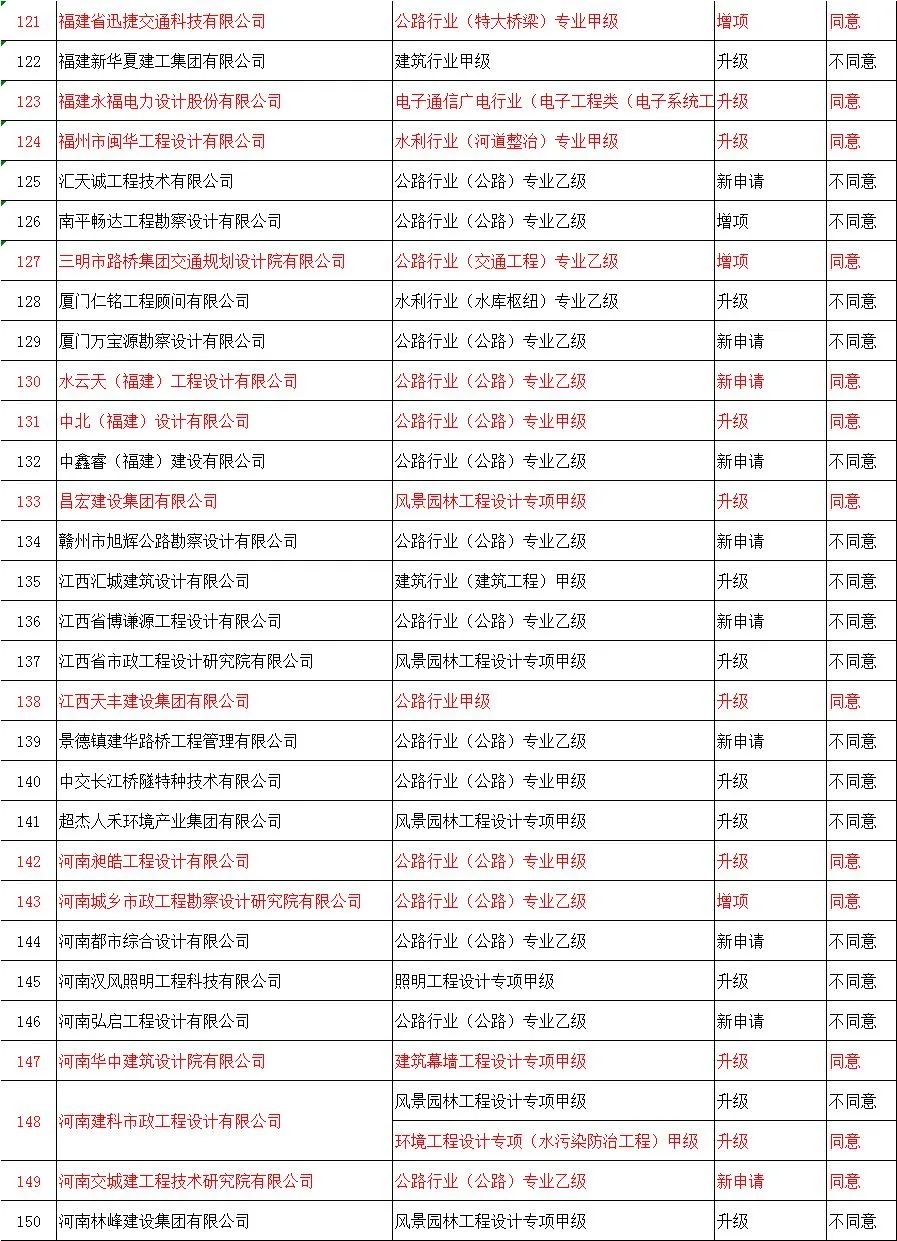 | 137 | 河南省公路工程局集团有限公司 | 公路工程施工总承包特级 | 升级 | 同意 |
