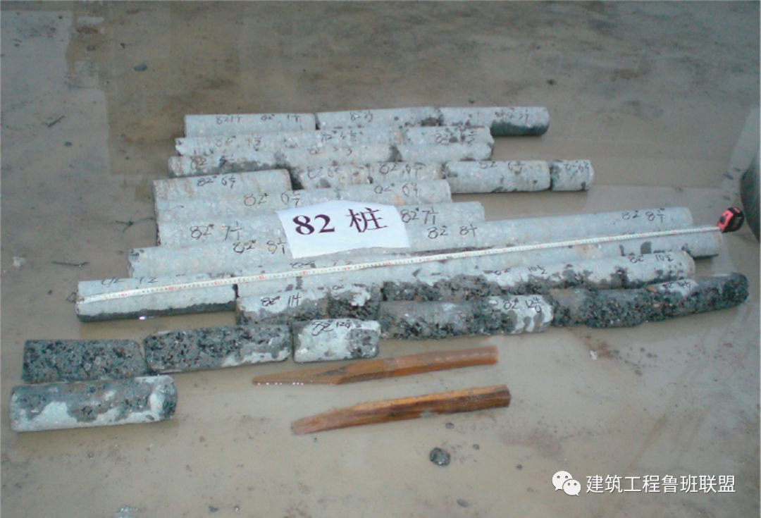 钻孔取芯法主要是采用钻孔机(一般带10mm内径)对桩基进行抽芯取样,根据取出芯样,可对桩基的长度、混凝土强度、桩底沉渣厚度、持力层情况等作清楚的判断。