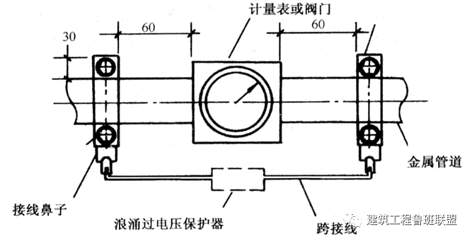 计量表或阀门等电位连接