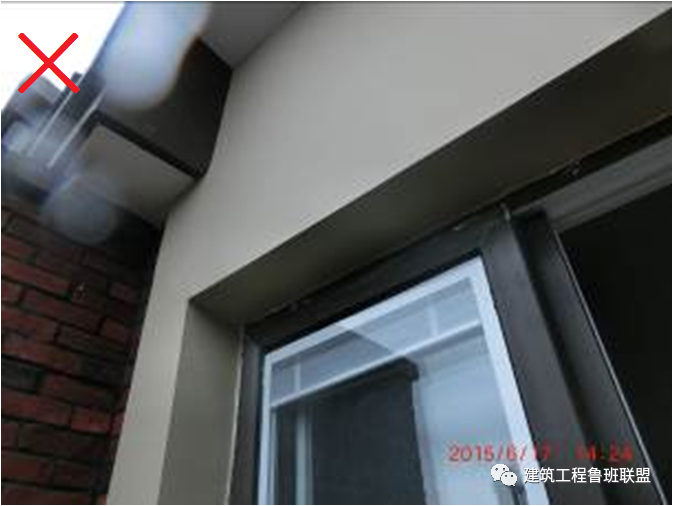 2、涂料等外饰面施工时造成,滴水线被覆盖或污染。