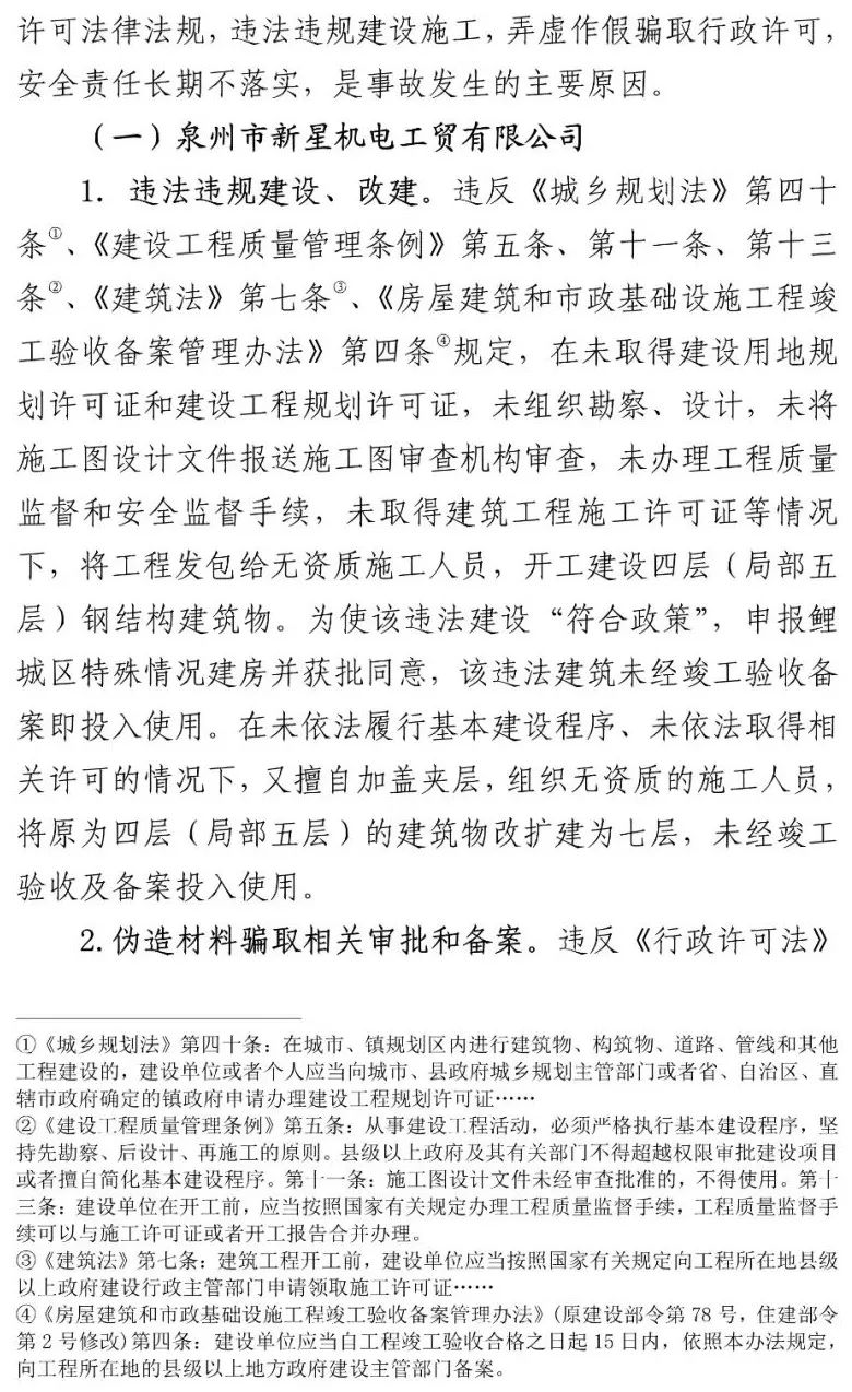 泉州市新星机电工贸有限公司法定代表人杨金锵、泉州市广鑫建设工程公司法定代表人蔡条辉等23名相关责任人员被公安机关依法立案侦查并采取刑事强制措施。