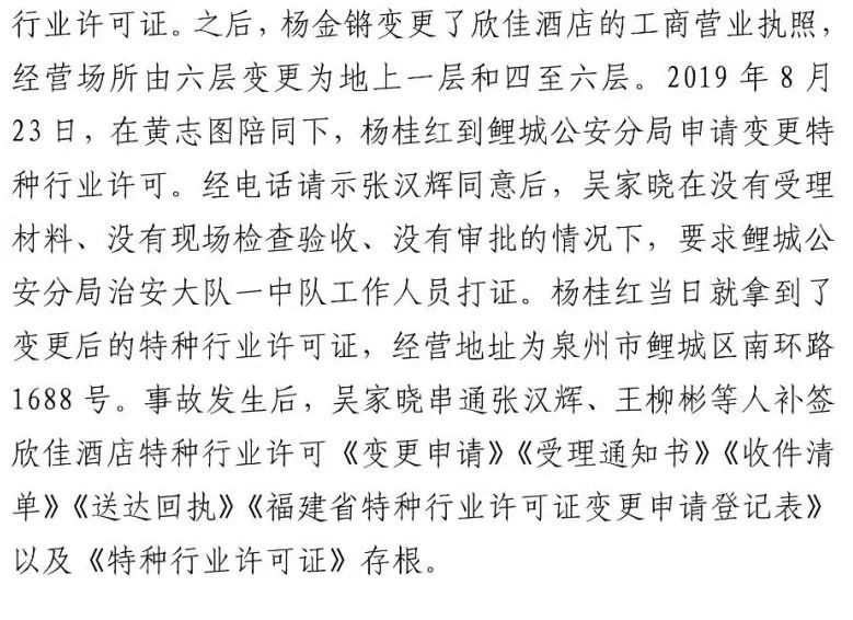有着明显错误的检查验收意见表和杨金锵提供的存在诸多问题的材料,随后又经过了鲤城公安分局治安大队领导、分管副局长两级审批,但他们都是随便翻了翻就直接签字。