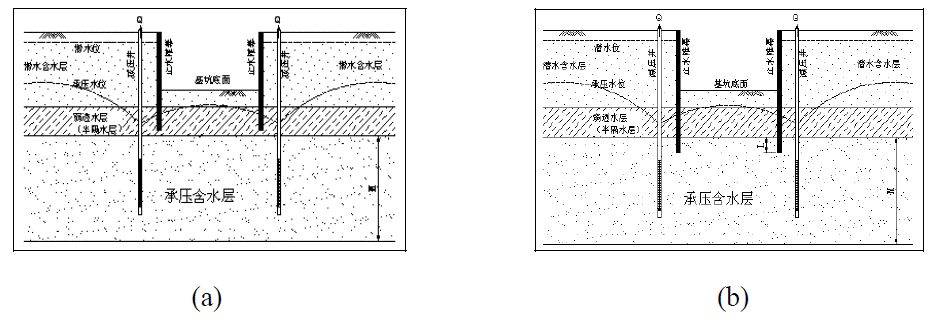 c、所有减压井抽出的水应排到基坑影响范围以外或附近的天然水体中。现场排水能力应考虑到所有减压井(包括备用井)全部启用时的排水量。每个减压井的水泵出口应安装水量计量装置和单向阀。