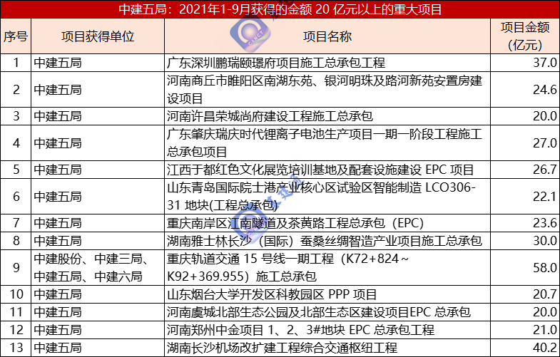 中建五局 1-9 月签下超 370 亿元的重大合同,在房建、市政、城轨交通和机场工程领域都有涉足。