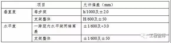 (2)支架搭设的垂直度与水平度允许偏差应符合下表的要求: