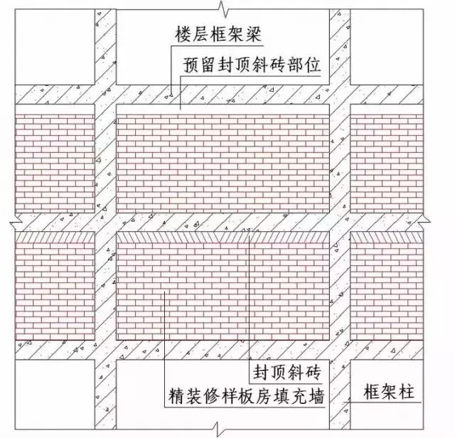 2.样板房墙体砌筑时应将上层墙体砌筑但不允许封顶,以防止上部梁结构受力变形影响样板房的墙体;