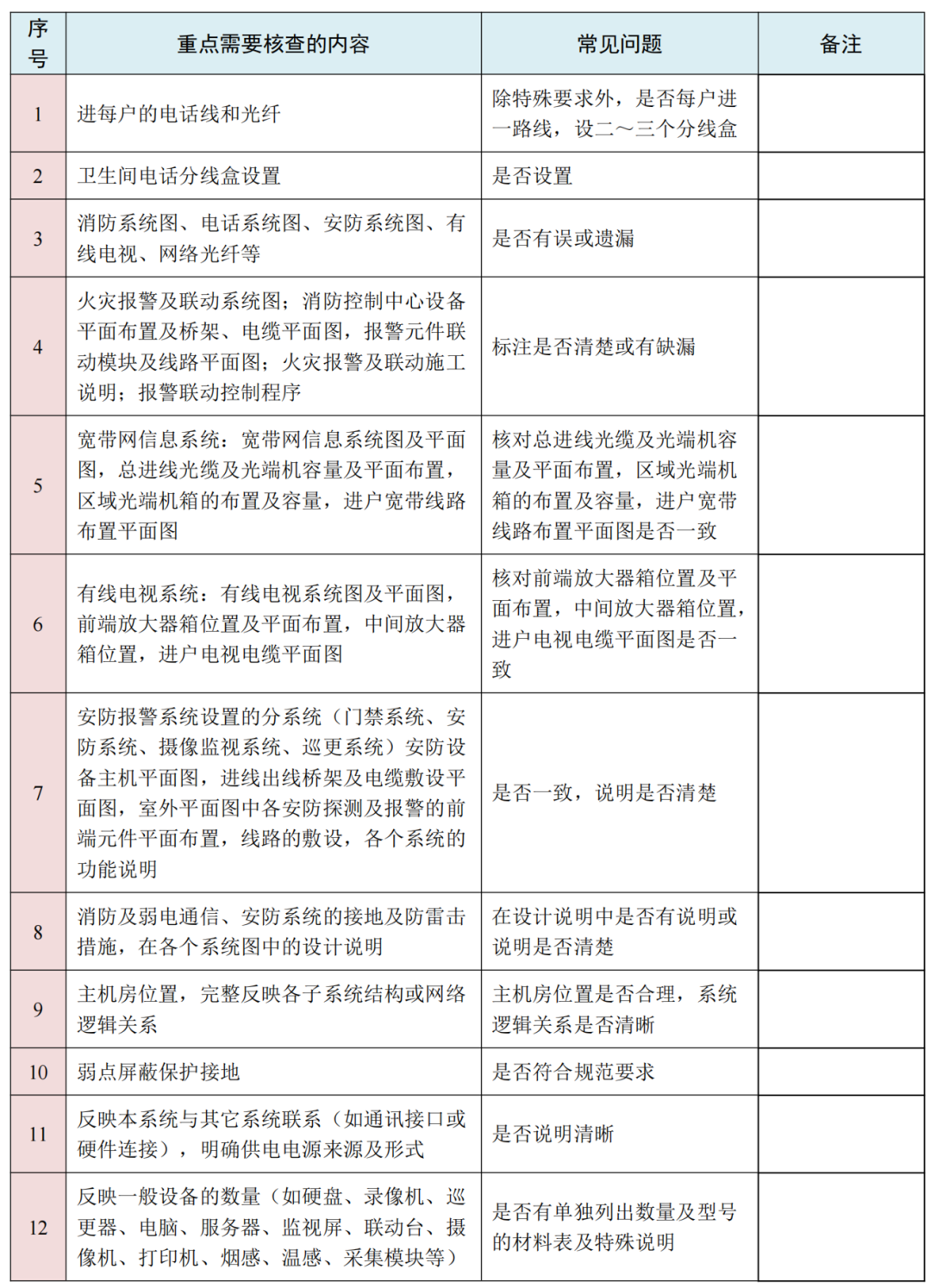 弱电专业施工图纸审查要点
