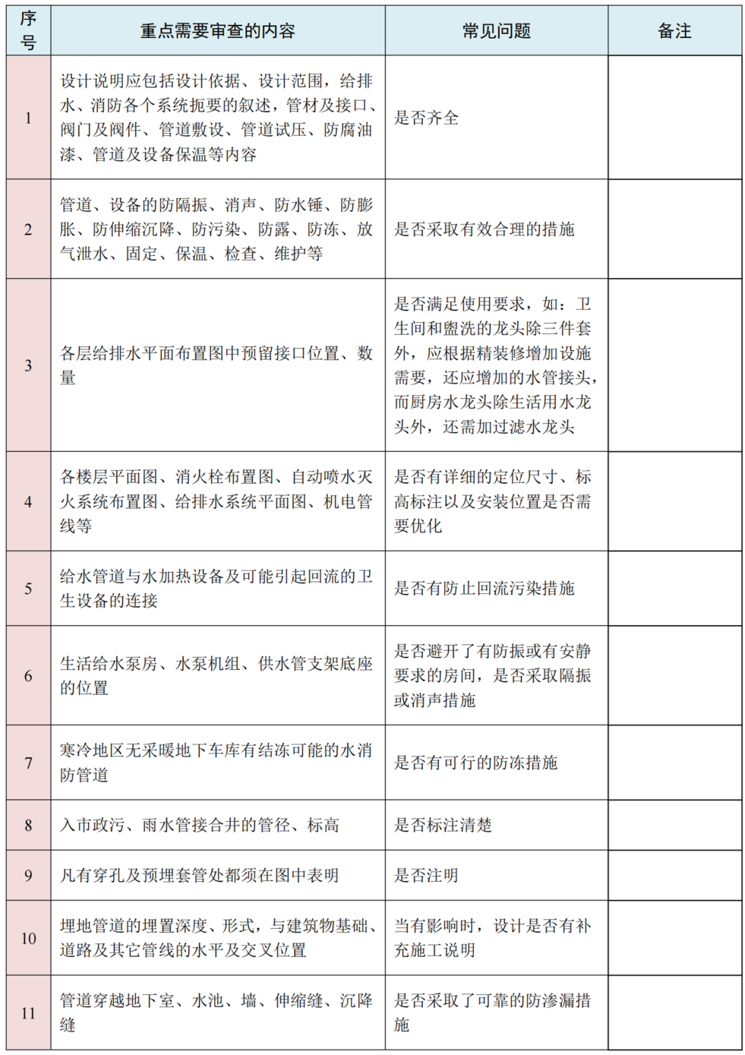 给排水专业施工图纸审查要点