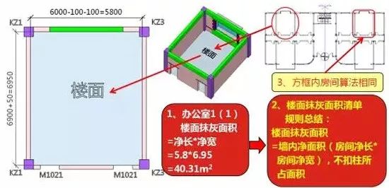 很多人看了规则,但是一遇到工程就记不住,按照平常理解,是要扣除的,因为柱子下面是不抹灰的吗,但是规则恰恰不是这样做的,计算规则有一个功能,就是让复杂的计算简单化。