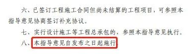本指导意见自发布之日起执行,在建工程或已竣工但尚未办理竣工结算的工程,按照以上原则执行。