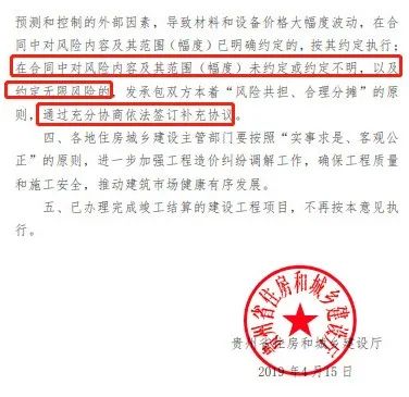 2019年4月15日,贵州省住建厅发布《关于加强建设工程材料价格风险控制的指导意见》,明确: