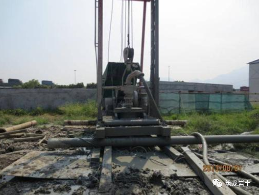 一般情况下,搅拌机对粒径10cm以下的卵石地层亦适用。在成桩过程中如遇较大孤石,则采用加水冲击,提高水泥掺量的方法,若孤石较大无法冲脱,则采用加桩补强的方法。准确定位桩的平面位置,桩机就位严格按桩的平面位置就位;对于有偏斜的桩位采用加桩的措施,在其背面补作加强桩。发生意处停机事件,将钻杆下沉1.0m,重新喷浆搅拌,防止出现断桩或夹层现象,若两桩咬合超过24h,则第二根桩采用增加20%浆量,或采用加桩。 在基坑开挖中发现工法桩有断桩、开叉处,则采用在开挖内侧注浆,外侧旋喷桩止水,并用t=12mm钢板在断桩、开叉处封闭,钢板与工法桩内的型钢满焊。钻孔桩施工时由于砼外溢,造成接面处不规则,易产生大规模涌水、涌砂现象。在钻孔桩与SMW工法桩接头处采取以下技术措施:1) 在接头处的桩增加水泥浆量和搅拌次数,提高水泥掺量并使之与土体充分搅拌,施工中严禁冲水下沉。2) 在接头处外侧作φ650旋喷桩止水帷墙,起止水和补充加固土体作用。3) 在内侧采用t=12mm的钢板将SMW工法桩中靠近钻孔桩的第一根工字钢与钻孔桩主筋焊接,焊接要求为满焊,钢板背后空隙用快凝水泥封堵。1) 有异常时,如施工遇无法达到设计深度时,应及时上报甲方、监理,经各方研究后,采取补救措施。2) 在碰到地面沟或地下管线无法按设计走向施工时,宜与设计单位、甲方、监理共同协商,确定解决办法。3) 施工过程中,如遇到停电或特殊情况造成停机导致成墙工艺中断时,均应将搅拌机下降至停浆点以下0.5m处,待恢复供浆时再喷浆钻搅,以防止出现不连续墙体;如因故停机时间较长,宜先拆卸输浆管路,妥为清洗,以防止浆液硬结堵管。发现管道堵塞,应立即停泵处理。待处理结束后立即把搅拌钻具上提和下沉1.0m后方能继续注浆,等10~20秒恢复向上提升搅拌,以防断桩发生。1、取芯设备:水泥土桩强度不高(一般在0.5-1.5MPa),采用普通地质钻机可满足要求,钻孔位置宜确定在桩中心,保证钻孔有良好的垂直度,防止钻出桩体外。 2、芯样描述芯样描述的主要内容包括:颜色、硬度、芯样完整性、水泥含量、搅拌均匀程度、芯样采取率等,要做好进尺记录。通长取芯时,还要对桩端土层进行描述。 3、抗压试件截取数量:混凝土桩桩长10-30m时,每孔截取三组芯样,一组三块,取三块平均值为该组代表值。三组试件代表值中最小值作为该桩芯样抗压强度代表值;抗压截取位置:上部试件位置距桩顶设计标高不宜大于1倍桩径或1m,下部试件位置距桩底不宜大于1倍桩径或1m。中间一组试件应在3-4m范围内截取。4、抗压试件制作要求 :由于水泥土桩桩身强度远小于混凝土,不能完全照搬混凝土芯样制作质量要求。是将芯样不带水切割成高径比接近1:1的试件,端面修平,即可试压。5、水泥搅拌桩强度至少达到28d的龄期,方能进行基坑开挖,开挖前应采用钻芯法检测成桩质量,钻芯数量不宜少于总桩数的2%,且不应少于5根。6、水泥搅拌桩,应在施工后一周内进行开挖检查或采取钻孔取芯等手段检查成桩质量,若不符合设计要求应及时调整施工工艺。7、水泥搅拌桩28d龄期单轴抗压强度、检测数量要符合设计及规范要求。