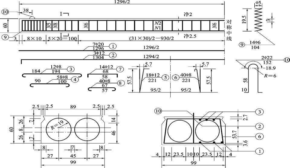 (2)尺寸单位:在路桥工程图中,钢筋直径的尺寸单位采用mm,其余尺寸单位均采用cm,图中无需注出单位。