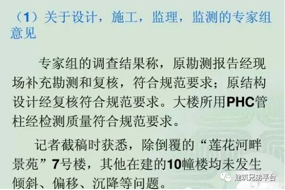 紧贴7号楼北侧,在短时间内堆土过高,最高处达10米左右;与此同时,紧邻7号楼南侧的地下车库基坑正在开挖,开挖深度4.6米,大楼两侧的压力差使土体产生水平位移,过大的水平力超过了桩基的抗侧能力,导致房屋倾倒。