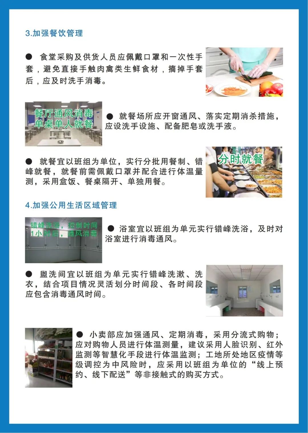 4.5.1 生活区距离工地较远的项目,尽量做到生活区到施工区封闭管理,鼓励安排专车接送人员上下班。合理安排生活区的出入口,入口要有专人负责测温、核对人员身份和健康状况等。