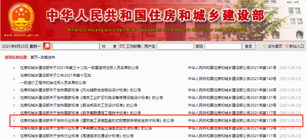 9月3日,合肥市住建局发布关于执行《建筑施工承插型盘扣式钢管脚手架安全技术标准》(JGJ/T231-2021)的通知,要求这两类项目必须使用镀锌承插型盘扣式钢管脚手架。