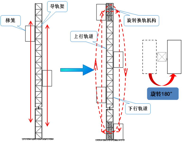 由旋转换轨机构带动梯笼完成旋转变换轨道