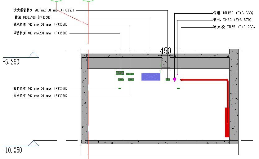 本项目为办公写字楼,机电系统主要包含:强电、弱电、通风、排烟、正压送风、消火栓系统、喷淋系统、给水、排水、压力排水、地库冲洗。各专业排布心得:①机械车位保障3.6米以上净高。②设计院的深化≤DN50的管线不做考虑,本次只要涉及综合支架的管线都需要进行优化。这也说明综合管线优化本质不只是管线的排布,更是综合支架的方案设计。③管线排布一般都需要进行3遍以上修改,自己改一遍。和其他同事相互检查再优化一次,最后会议讨论再调整一次。因为自己改的一遍其实还有很多“节点”还没有打开或捋顺。只有通过检查才能更加完善。④复杂节点可以进行全专业讨论,或许在建筑或者结构专业那就很好解决。这也要求管线优化需要具备一定的建筑结构的知识。深化设计常见问题:①走道内排布未考虑风口。②原设计为普通灯具的管线排布后要改为线槽灯的未考虑线槽灯安装位置。③未考虑喷淋支管的安装空间。④未考虑阀门安装和操作空间。