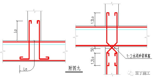8、构造柱与梁的连接详见附图九: