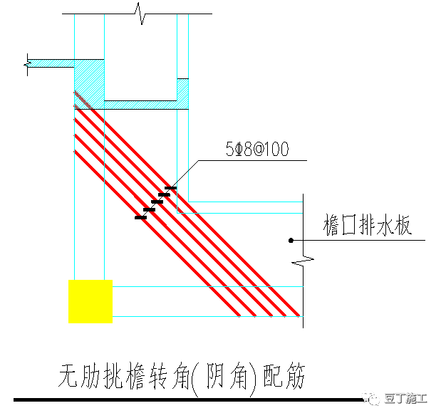 2)无肋挑檐转角(阴角)配筋: