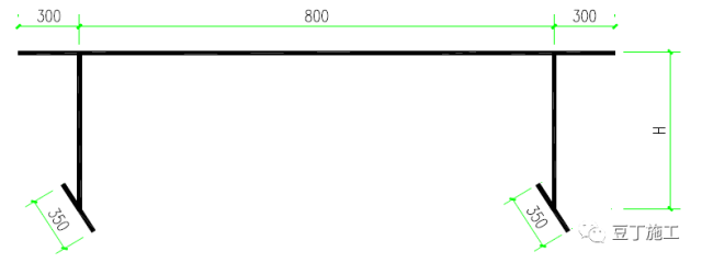2)承台钢筋绑扎先铺底板下层钢筋。根据设计和规范要求,决定下层钢筋哪个方向钢筋在下面,参照16G101-1第66-70页安装,绑完下层钢筋后,按间距0.8m 左右设置钢筋马凳,马凳及附加钢筋应支设在下层钢筋网上,不得直接落在保护层,在马凳上摆放纵横两个方向定位钢筋,钢筋上下次序及绑扣方法同底板下层钢筋。马凳高度H=承台高—混凝土保护层厚—上层双向钢筋直径—下部钢筋单向钢筋直径,桩承台采用下图的钢筋马凳)间距800mm 左右设置,如下图:
