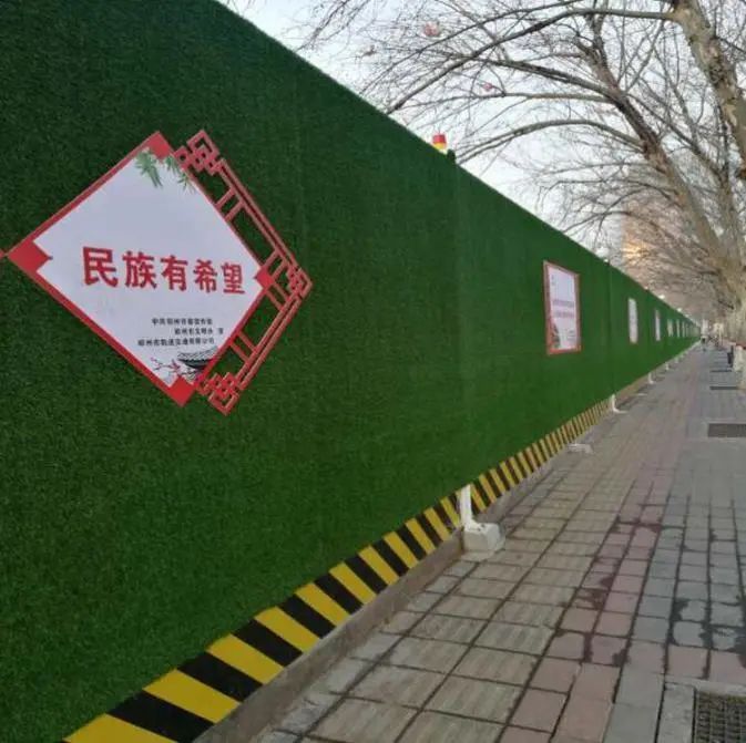3.房屋建筑工程工地围挡应设置仿真绿植,市政工程工地可参照房屋建筑工程工地设置仿真绿植围挡,也可根据实际情况设置定型化围挡。采用人造草坪作为饰面的仿真绿植围挡结构,人造草坪背胶应与围挡墙体贴紧粘牢,无明显色差,不褪色,高度(厚度)不低于1厘米,草皮簇绒密度不低于13650针/平方米,草纤维纤度不低于7500分特。施工现场应提供仿真草坪出厂合格证书和相应技术参数资料备查。