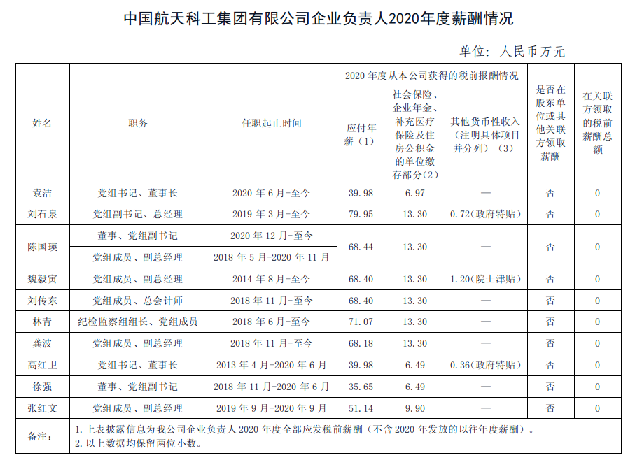 (以上数据不包含机械科学研究总院集团有限公司,因公司官网变更中,薪酬披露将在后期展示)