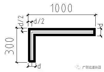 图1按照钢筋外皮计算式:300+2100+500=2900,按照图2方法量取的尺寸求出结果是2900,可见标注的尺寸都是按外皮标注的。实际钢筋下料时要比实际钢筋短一个钢筋直径。