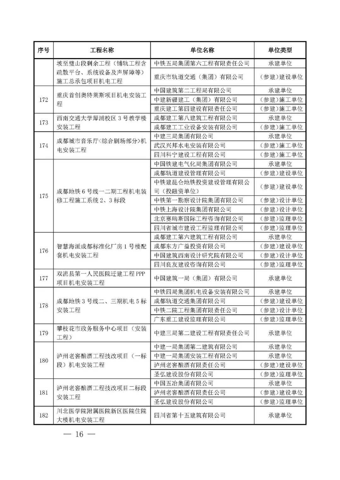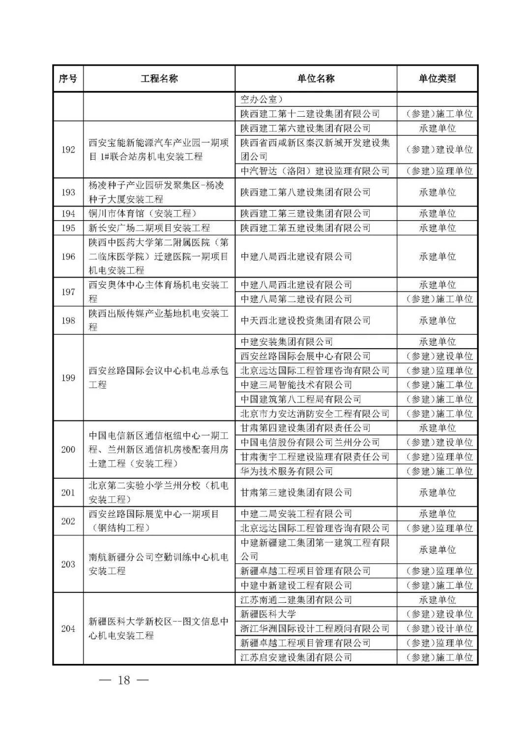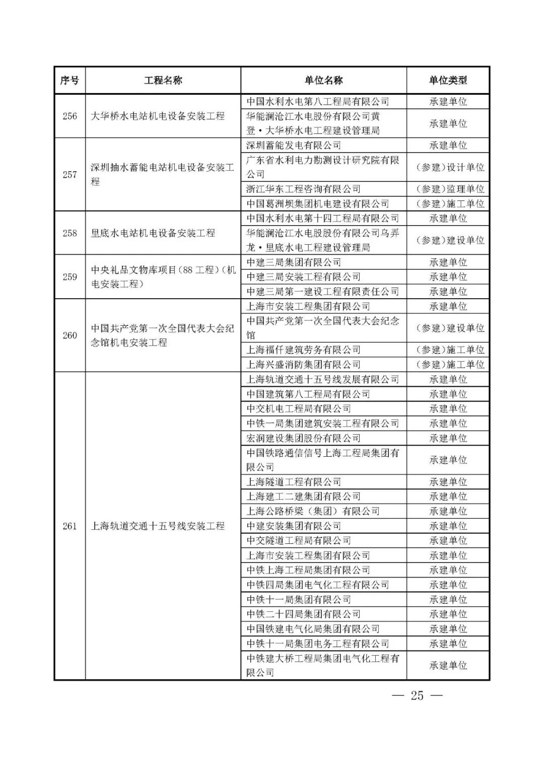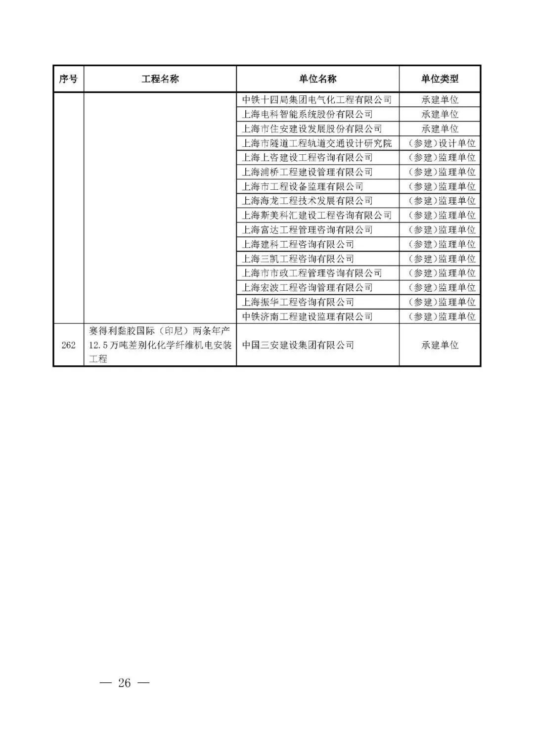 262项入选工程名单