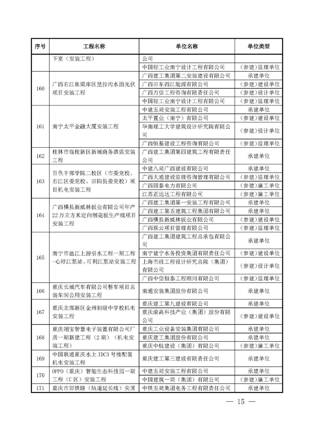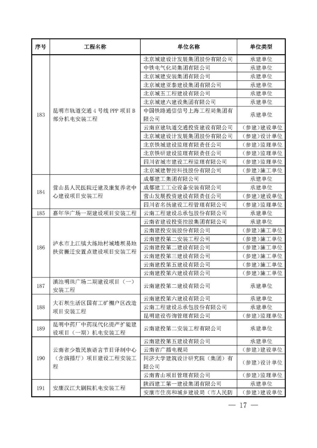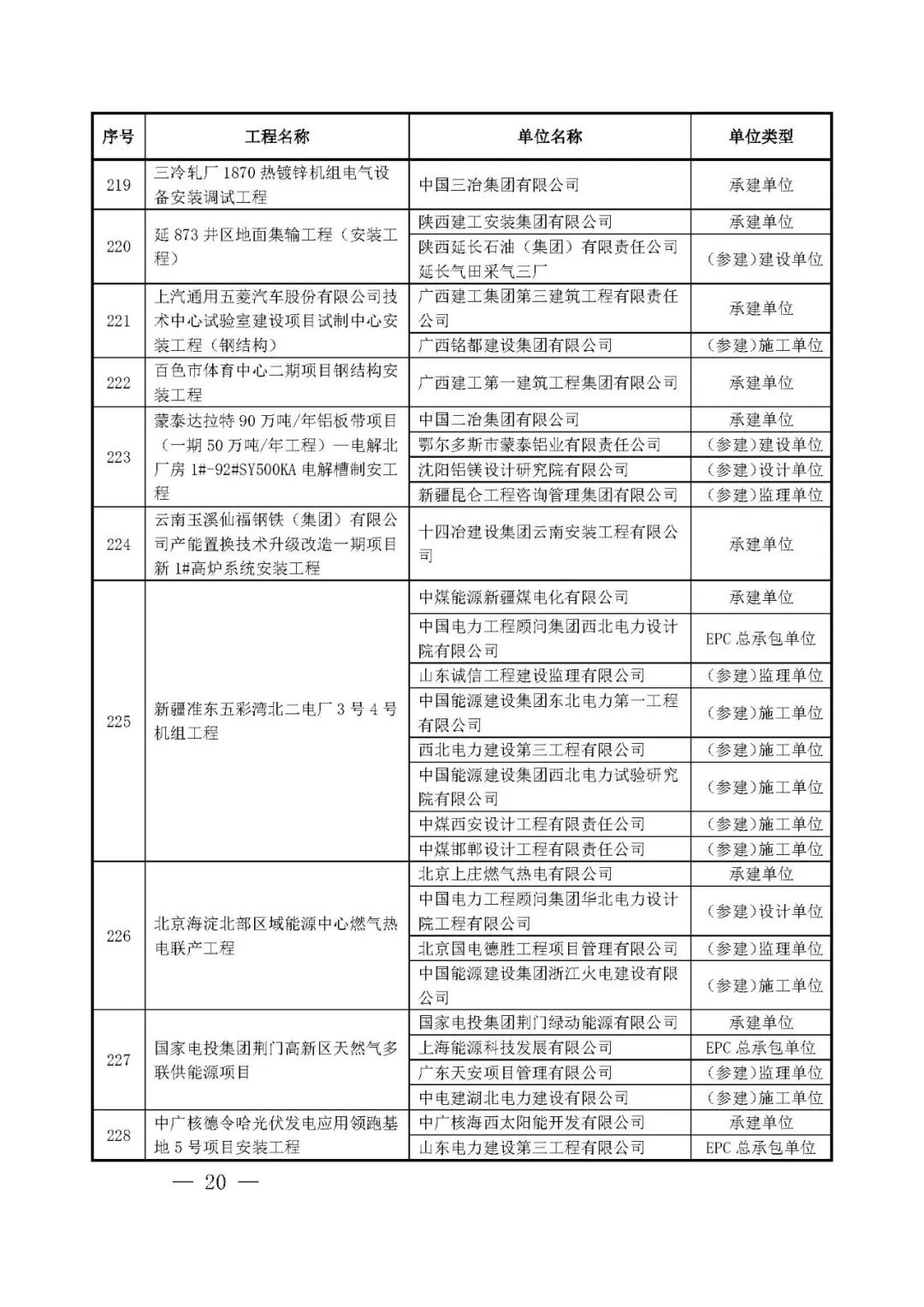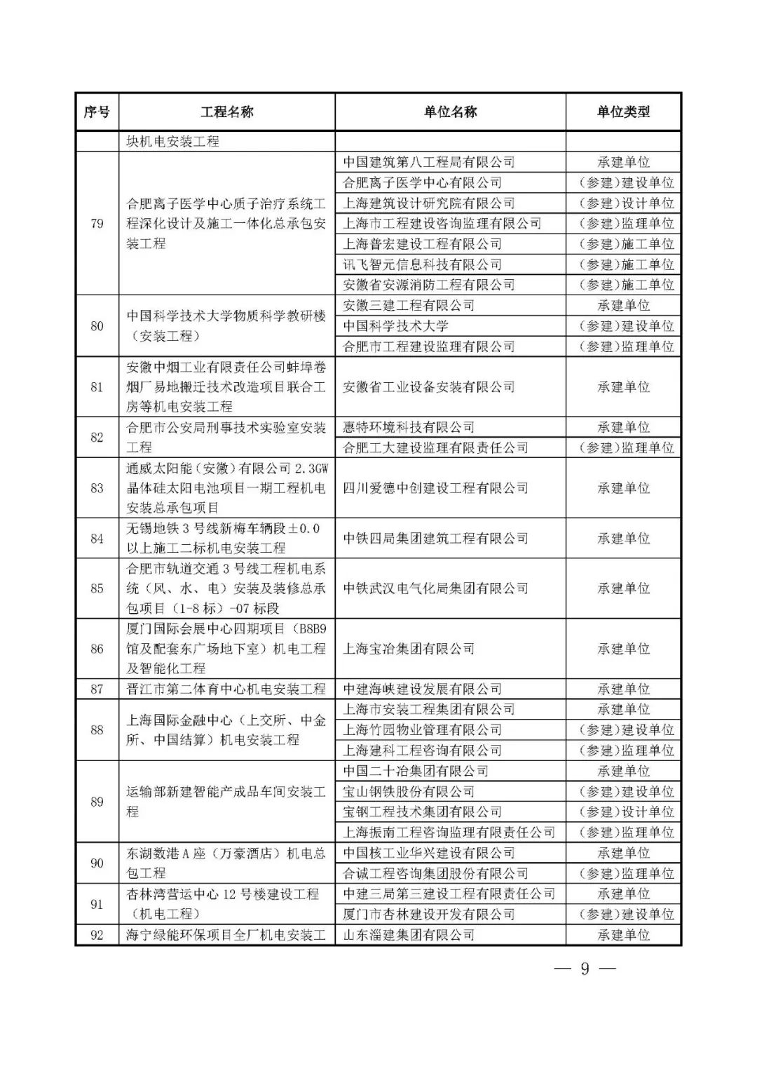 262项入选工程名单