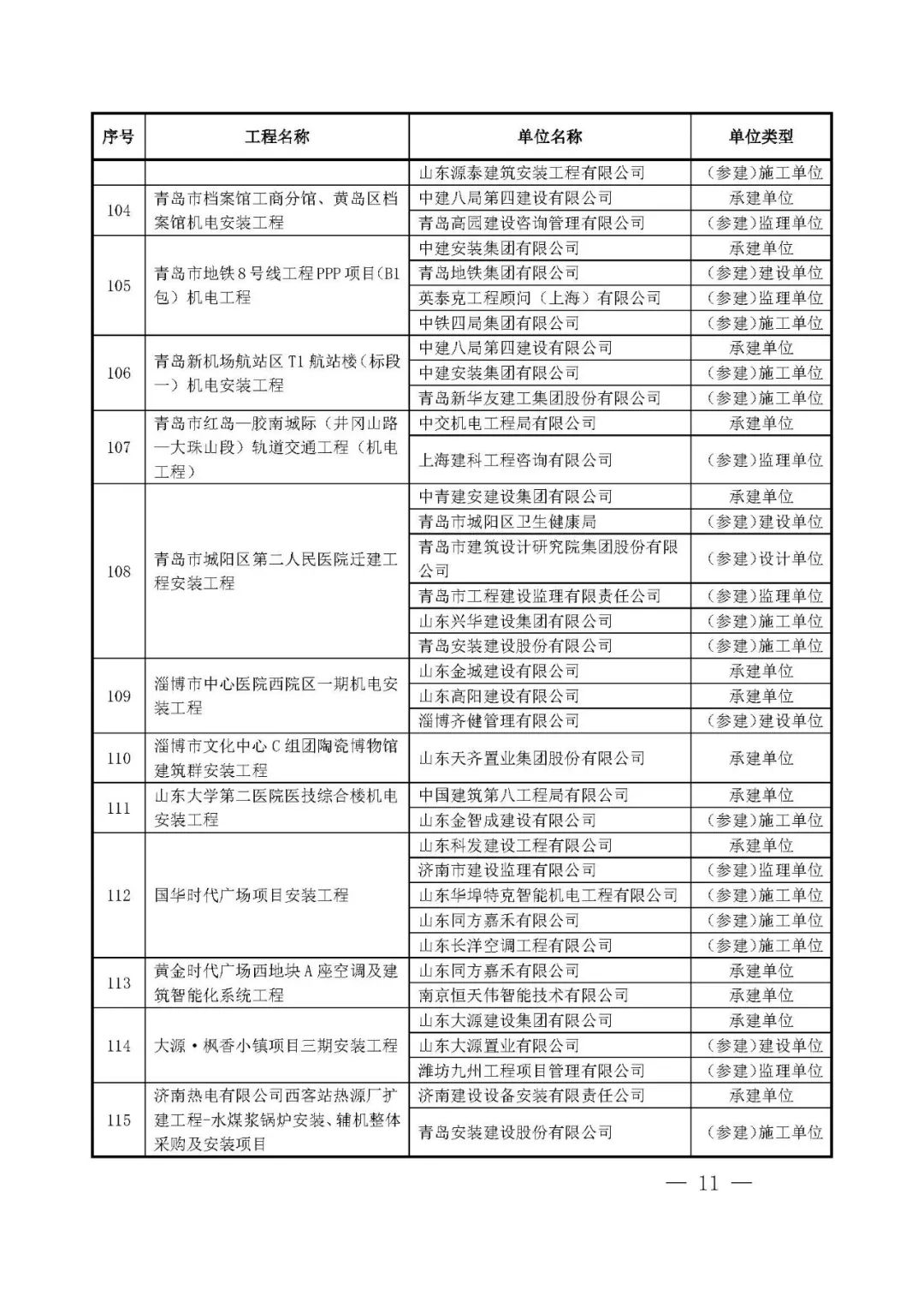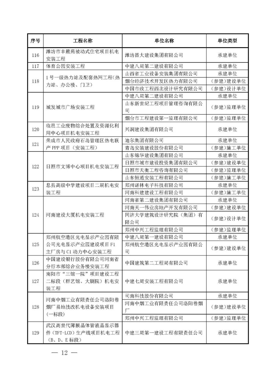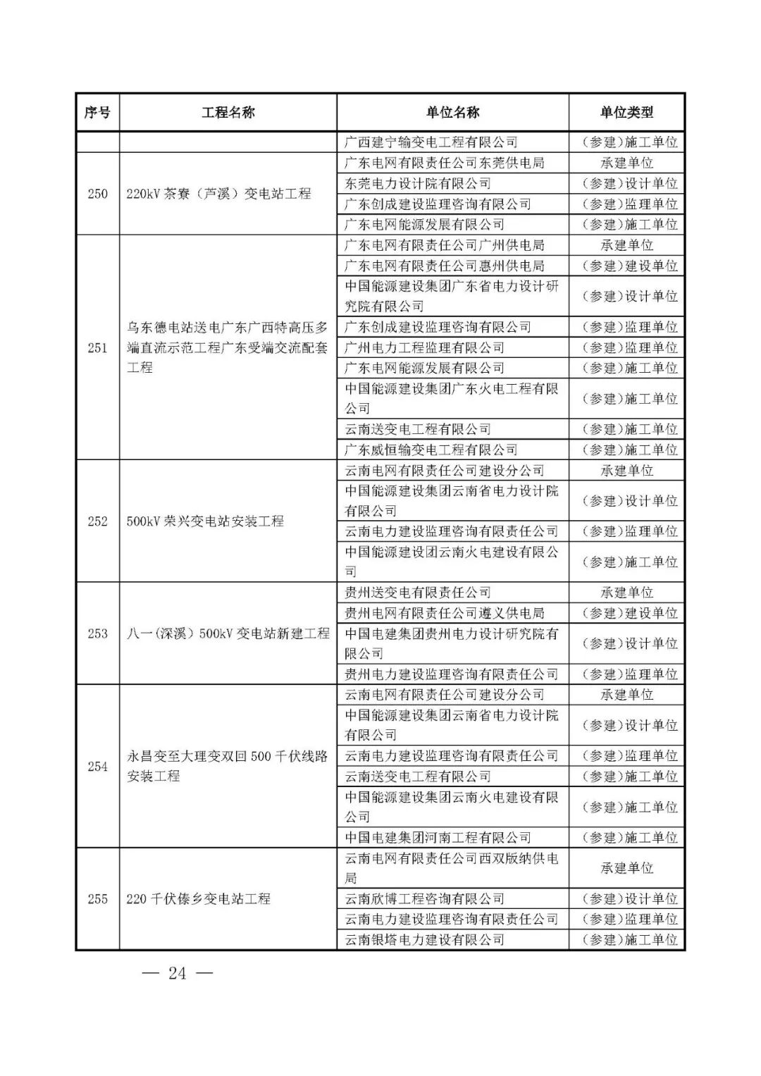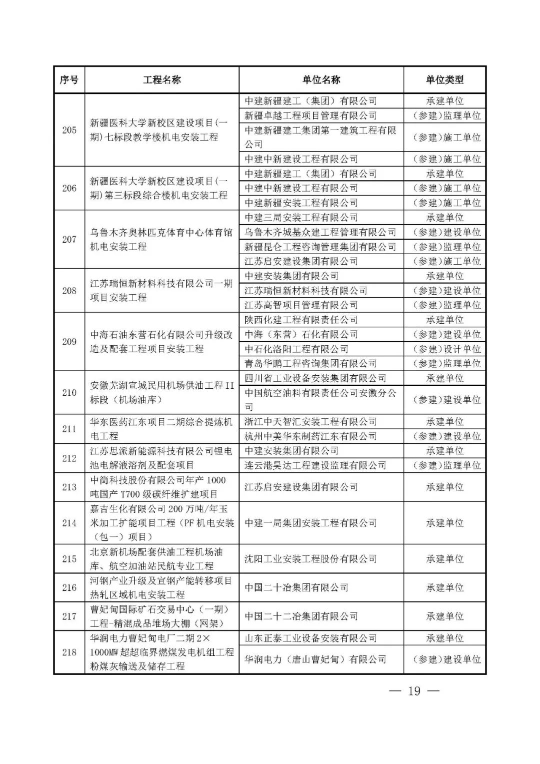 262项入选工程名单
