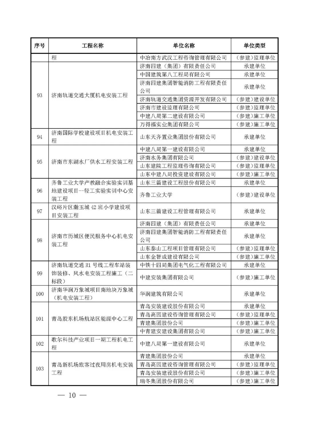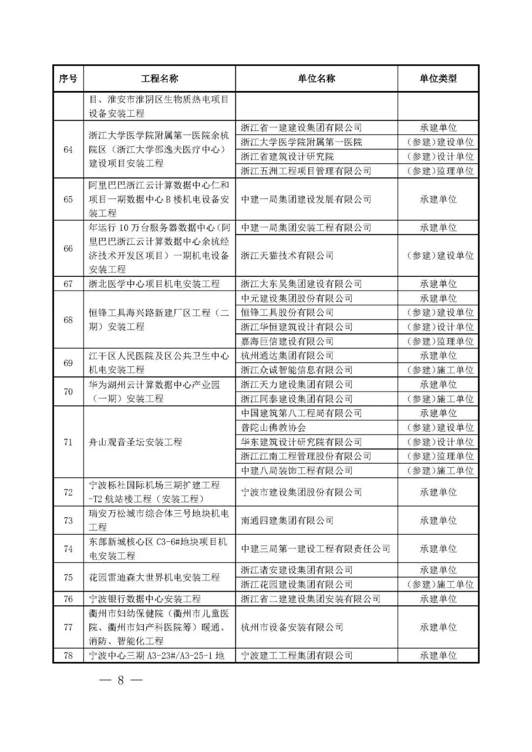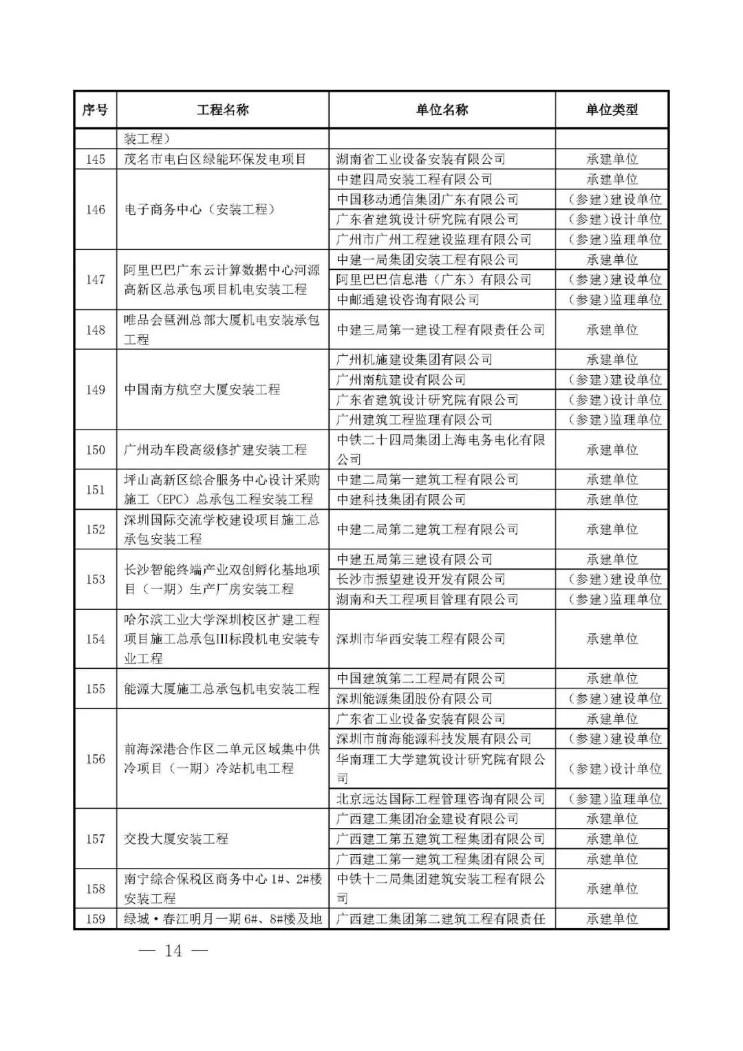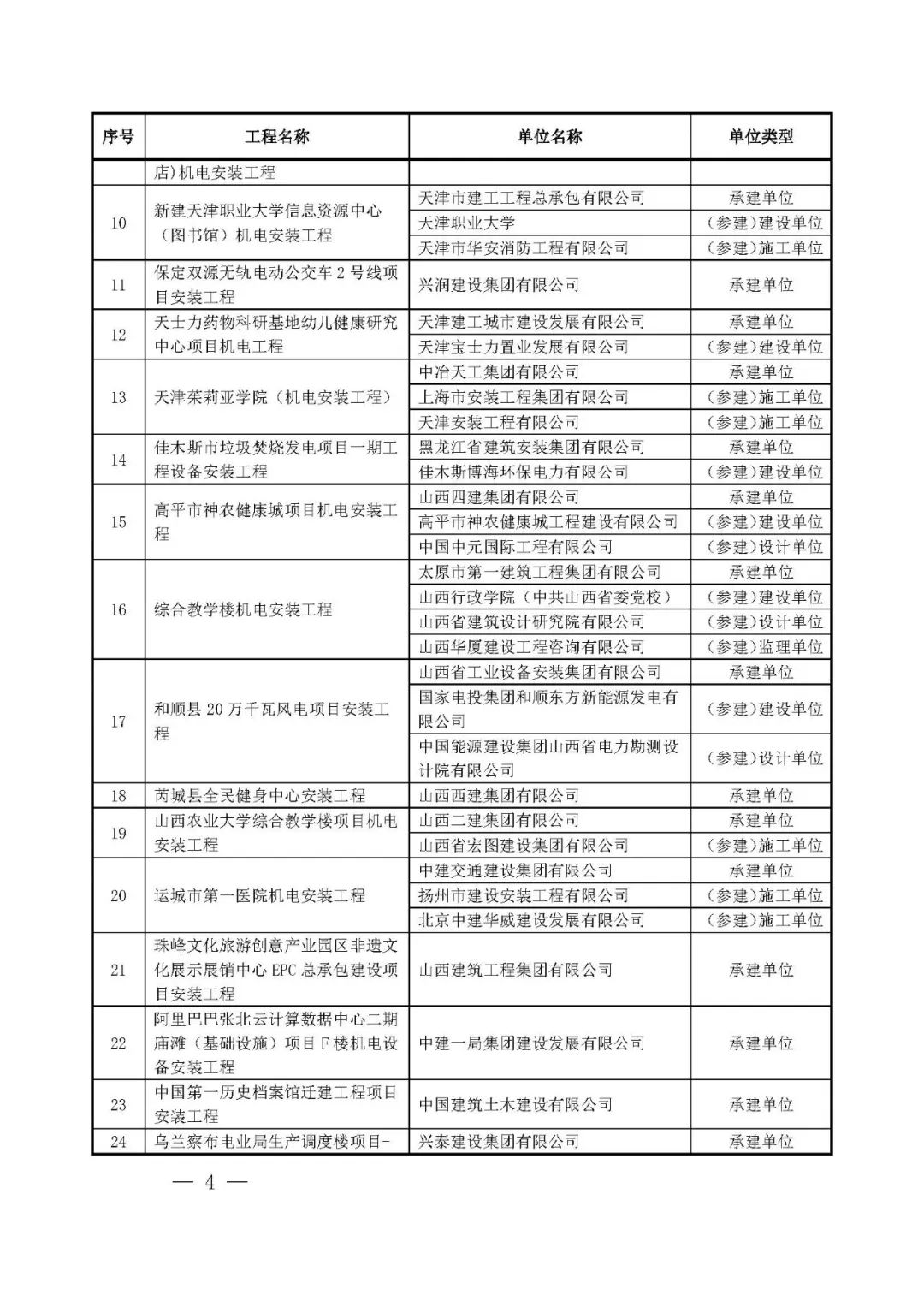 262项入选工程名单