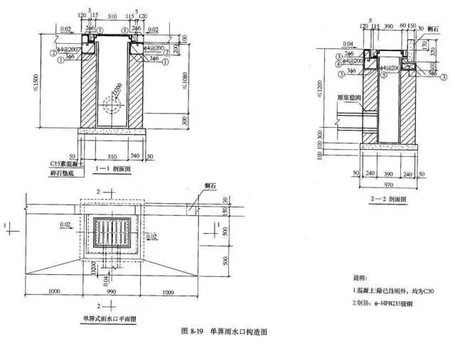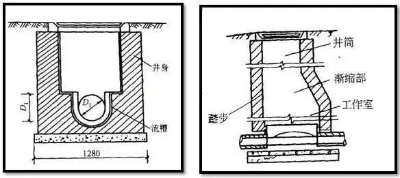 宜设流槽,并使流槽底具有一定坡度,以降低水流阻力,防止淤积;流槽两侧至井壁间应有不小于20cm的宽度,以便于养护人员下井时立足,即沟肩。