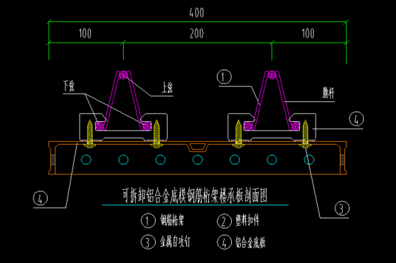 下面就可以根据可拆卸铝合金底模钢筋桁架楼承板剖面图来具体的计算楼承板的配筋了.