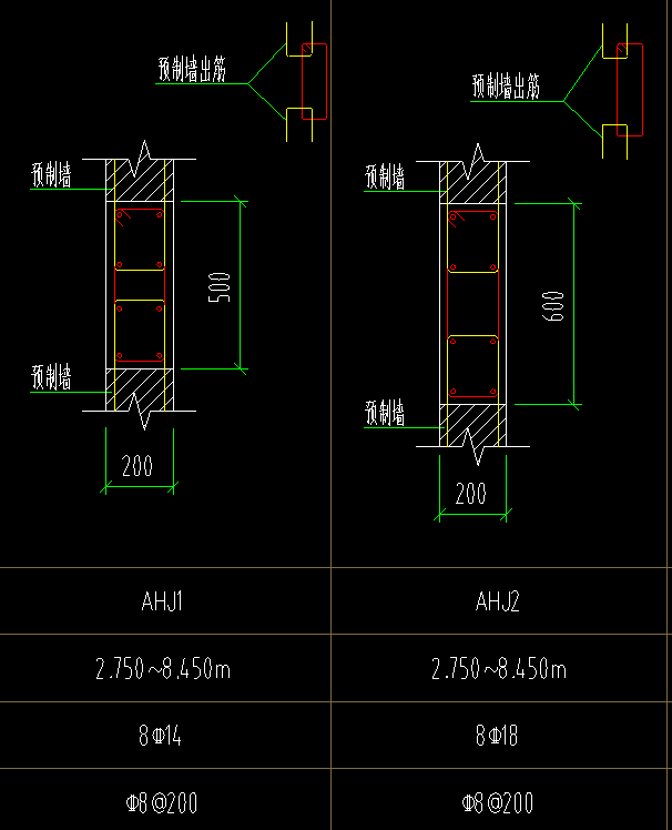 如图所示的AHJ1、AHJ2为连接预制墙的竖向现浇带,软件中暗柱绘制即可。