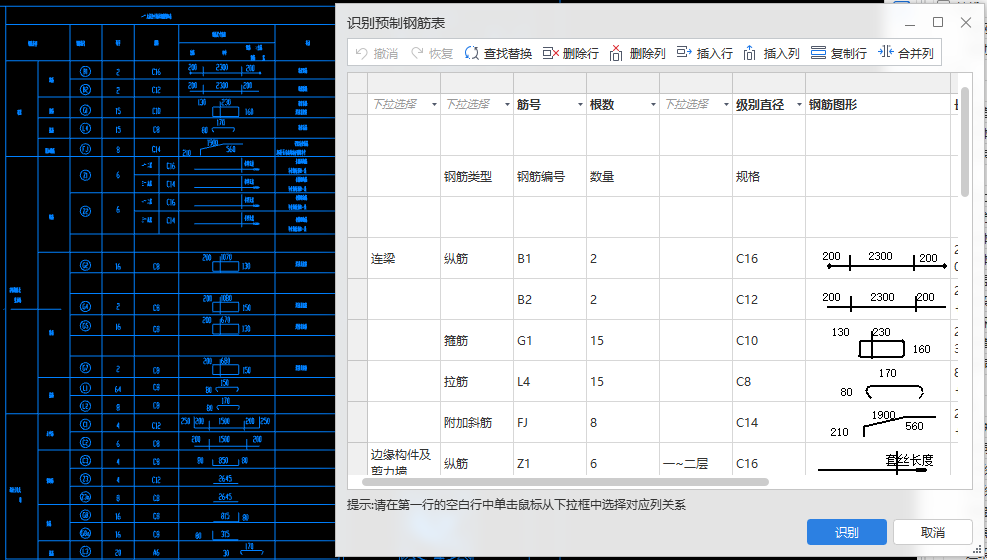 框选图纸中的钢筋明细表,点击“识别”即可。