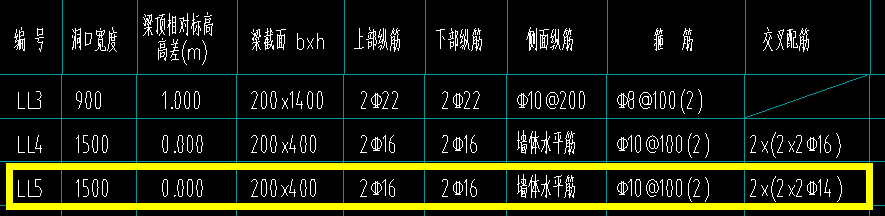 以本项目的LL5为例,连梁配筋见连梁表。连梁表中的截面信息、上部纵筋、下部纵筋、侧面纵筋、箍筋、交叉配筋是否都按连梁表中输入呢?具体需要与预制墙构件加工图结合起来看。