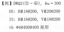 如图中DWQ1,长度为F轴~H轴,墙厚=300,OS代表外墙外侧贯通筋,H为水平筋,V为垂直筋;IS代表外墙内侧贯通筋,H为水平筋,V为垂直筋。