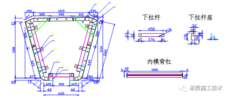 拆模:拆外模时,首先拆出端头模板及端隔板模板及中隔板堵头模,然后松对拉螺杆和两边支撑,拆除两边侧模,因为模板属大面、小厚度钢结构,侧向刚度不大,所以在拆除、起吊等作业时应防止模板发生塑性变形。内模拆除先将先拆板用拆模器拆除,解除了内模的环状构造后依次将内模拆完。。
